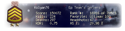 | Kill-streak | 7 | Death-streak | 11 | Team Kills | 0 |