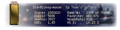 | Headshots | 37 | Suicides | 3 | Headshot / Kill | 13.26 % |