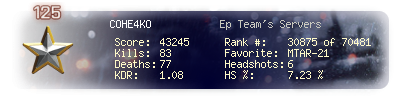 | Kill-streak | 10 | Death-streak | 6 | Team Kills | 0 |