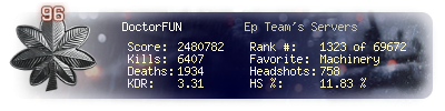 | Kills | 6407 | Deaths | 1934 | Kill / Death | 3.31 |
