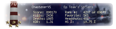 | Headshots | 481 | Suicides | 24 | Headshot / Kill | 19.75 % |