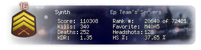 | Headshots | 0 | Suicides | 0 | Headshot / Kill | 0 % |