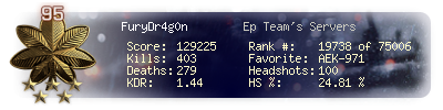 | Kills | 403 | Deaths | 279 | Kill / Death | 1.44 |
