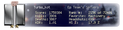 | Headshots | 699 | Suicides | 166 | Headshot / Kill | 17.9 % |