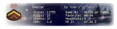 | Headshots | 8 | Suicides | 0 | Headshot / Kill | 44.44 % |