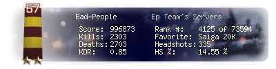 | Kills | 2303 | Deaths | 2703 | Kill / Death | 0.85 |