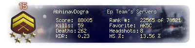| Kill-streak | 3 | Death-streak | 19 | Team Kills | 0 |