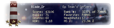 | Headshots | 17 | Suicides | 0 | Headshot / Kill | 23.94 % |
