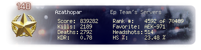 | Kills | 2189 | Deaths | 2792 | Kill / Death | 0.78 |