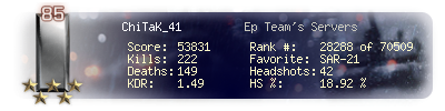 | Headshots | 42 | Suicides | 0 | Headshot / Kill | 18.92 % |