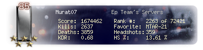 | Kills | 3425 | Deaths | 5145 | Kill / Death | 0.67 |
