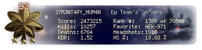 | Kills | 10257 | Deaths | 6764 | Kill / Death | 1.52 |