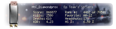 | Kills | 2580 | Deaths | 610 | Kill / Death | 4.23 |