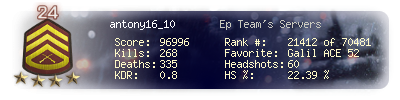 | Kills | 268 | Deaths | 335 | Kill / Death | 0.8 |