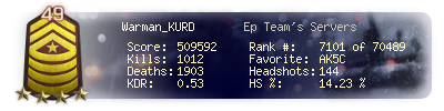 | Kill-streak | 9 | Death-streak | 19 | Team Kills | 0 |