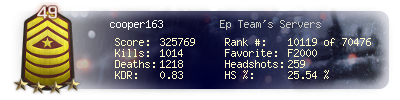 | Headshots | 32 | Suicides | 3 | Headshot / Kill | 25.2 % |