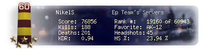 | Headshots | 45 | Suicides | 1 | Headshot / Kill | 23.94 % |