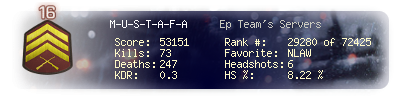 | Kill-streak | 5 | Death-streak | 20 | Team Kills | 0 |