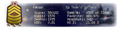 | Headshots | 341 | Suicides | 7 | Headshot / Kill | 21.64 % |