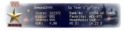 | Kills | 881 | Deaths | 900 | Kill / Death | 0.98 |