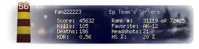 | Kills | 105 | Deaths | 186 | Kill / Death | 0.56 |