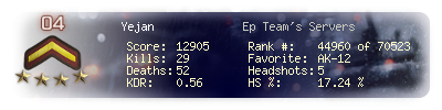 | Kill-streak | 3 | Death-streak | 4 | Team Kills | 0 |