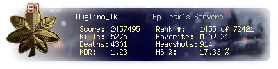 | Headshots | 120 | Suicides | 35 | Headshot / Kill | 7 % |
