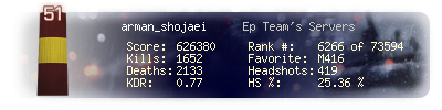 | Headshots | 419 | Suicides | 14 | Headshot / Kill | 25.36 % |