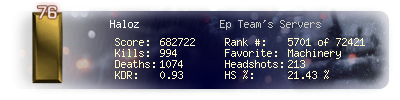 | Headshots | 213 | Suicides | 113 | Headshot / Kill | 21.43 % |