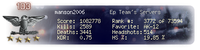 | Kills | 2589 | Deaths | 3441 | Kill / Death | 0.75 |