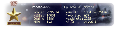 | Kills | 10881 | Deaths | 8386 | Kill / Death | 1.3 |