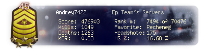 | Kill-streak | 14 | Death-streak | 11 | Team Kills | 0 |
