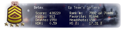 | Kills | 913 | Deaths | 1550 | Kill / Death | 0.59 |
