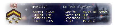 | Kills | 135 | Deaths | 159 | Kill / Death | 0.85 |