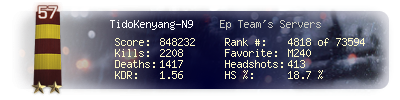 | Kill-streak | 17 | Death-streak | 9 | Team Kills | 0 |