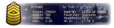 | Kills | 384 | Deaths | 861 | Kill / Death | 0.45 |