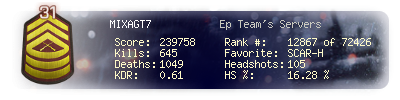 | Kill-streak | 5 | Death-streak | 14 | Team Kills | 0 |