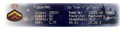 | Headshots | 26 | Suicides | 0 | Headshot / Kill | 28.26 % |