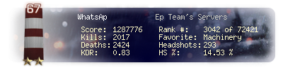 | Kills | 2017 | Deaths | 2424 | Kill / Death | 0.83 |