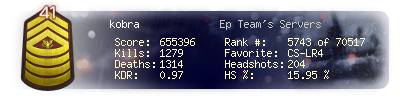 | Kills | 1279 | Deaths | 1314 | Kill / Death | 0.97 |