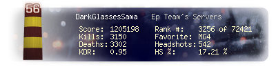 | Headshots | 542 | Suicides | 33 | Headshot / Kill | 17.21 % |