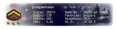 | Kill-streak | 6 | Death-streak | 8 | Team Kills | 0 |