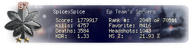 | Kills | 4757 | Deaths | 3584 | Kill / Death | 1.33 |