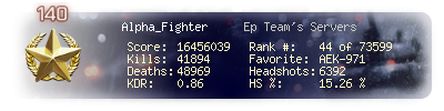 | Kills | 41894 | Deaths | 48969 | Kill / Death | 0.86 |