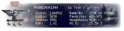 | Headshots | 567 | Suicides | 83 | Headshot / Kill | 15.59 % |