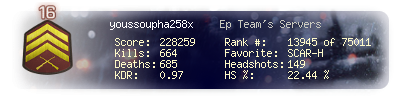 | Kill-streak | 7 | Death-streak | 9 | Team Kills | 1 |