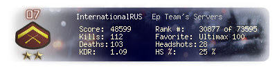 | Kill-streak | 6 | Death-streak | 8 | Team Kills | 0 |