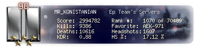 | Kill-streak | 8 | Death-streak | 15 | Team Kills | 0 |