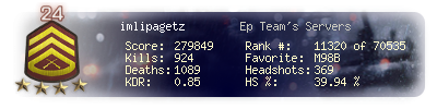 | Kill-streak | 12 | Death-streak | 25 | Team Kills | 1 |