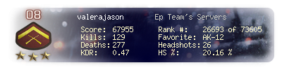 | Headshots | 12 | Suicides | 3 | Headshot / Kill | 26.09 % |